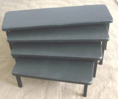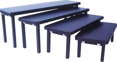 Conjunto de Quatro(4) Bancos constituídos de dois suportes laterais em tubo quadrado 20x1,2mm com ponteiras, unidos com dois tubos redondos de 3/4" x 1,2 mm através de quatro parafusos 5/16”x2” com arruelas 5/16”. Este conjunto está fixado ao Tampo (Madeira MDF-15 mm revestido com EVA 7 mm e curvim) através de quatro parafusos 4,5x35mm.Banco menor 22x47 e 16cm de altura